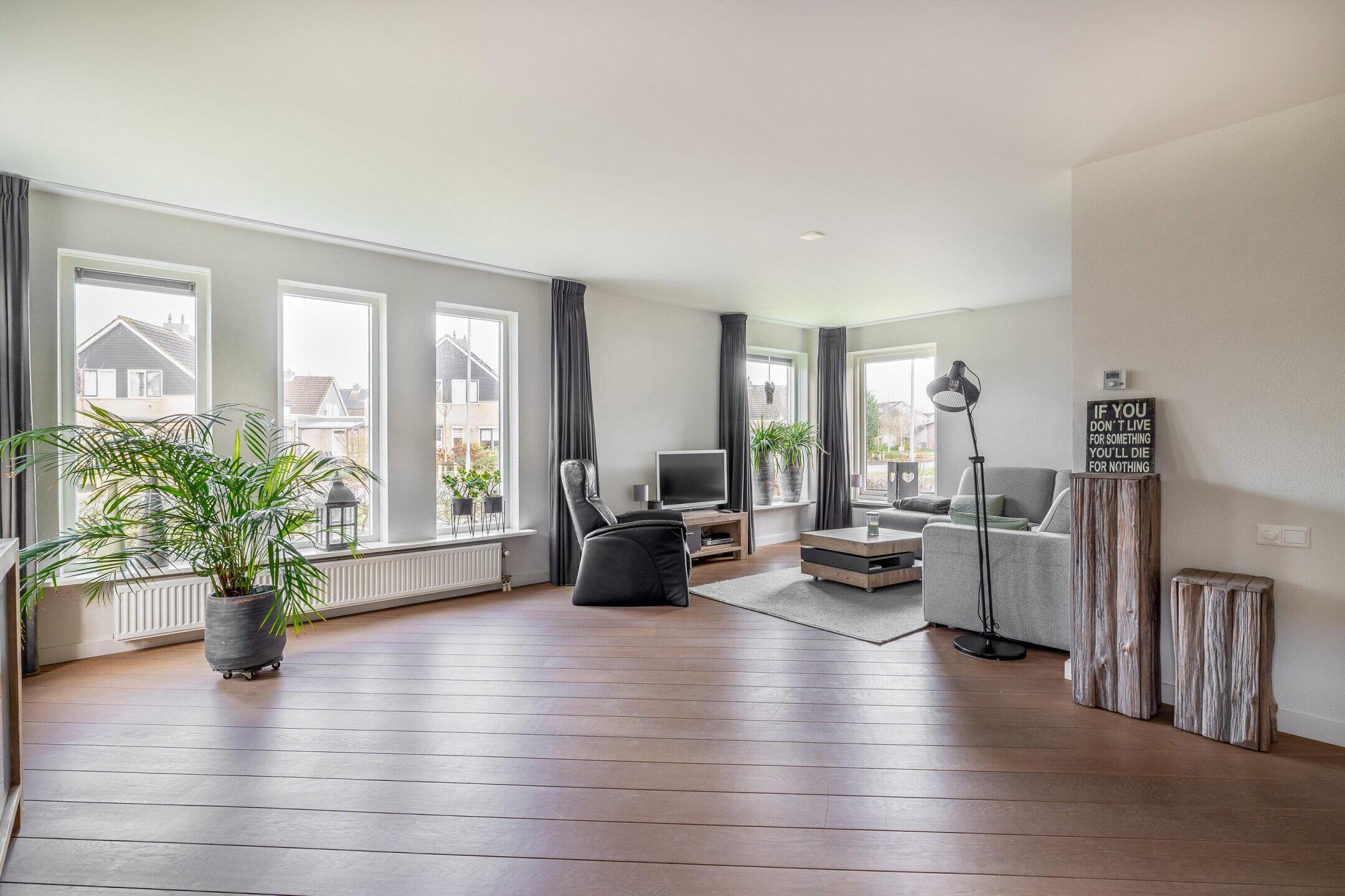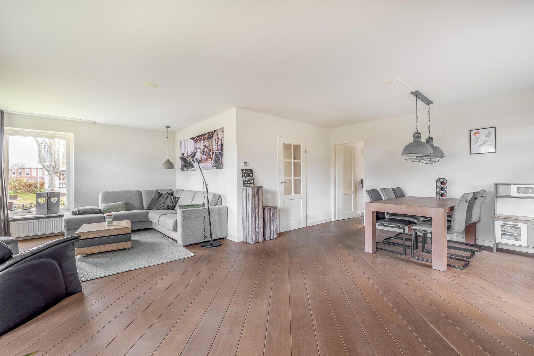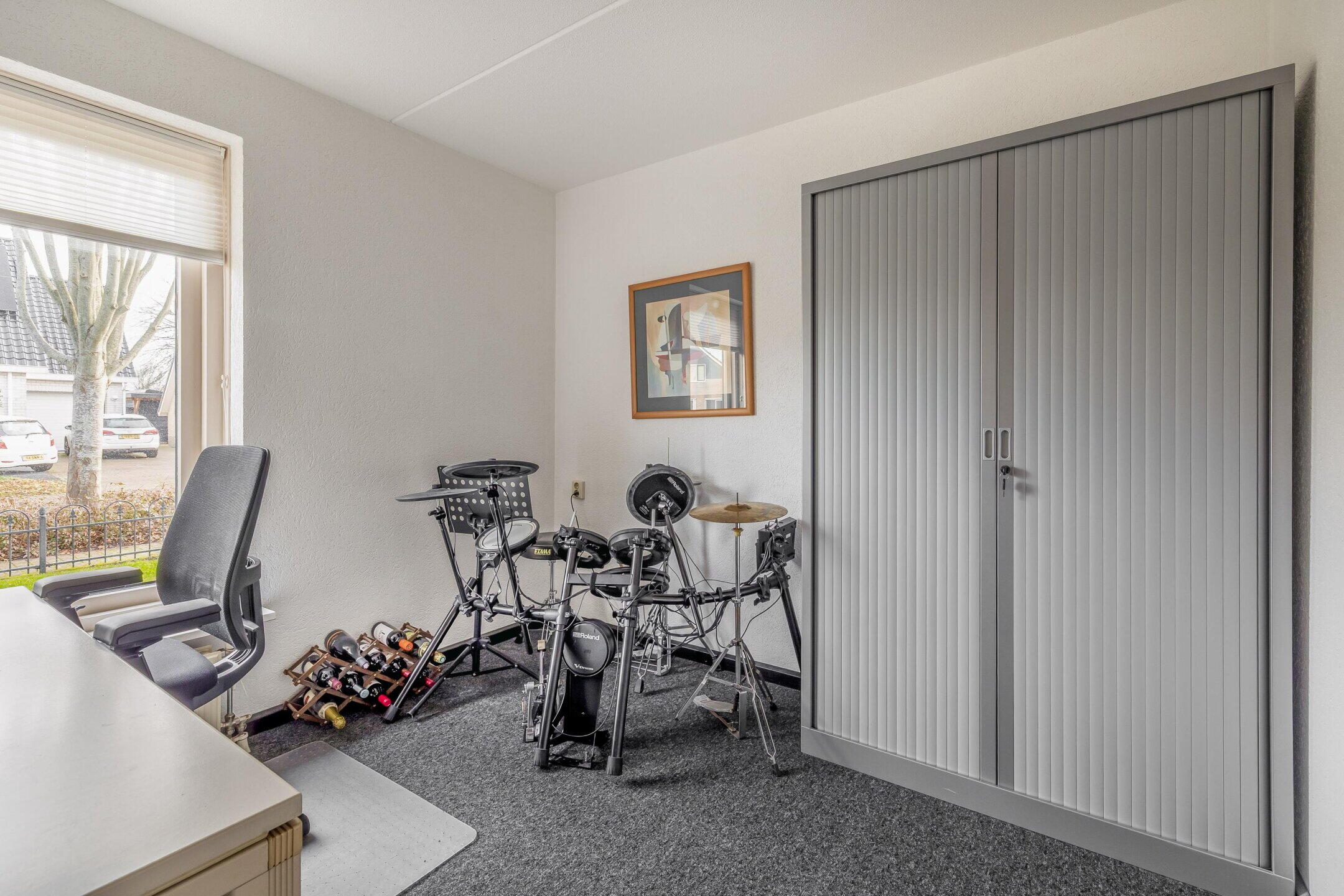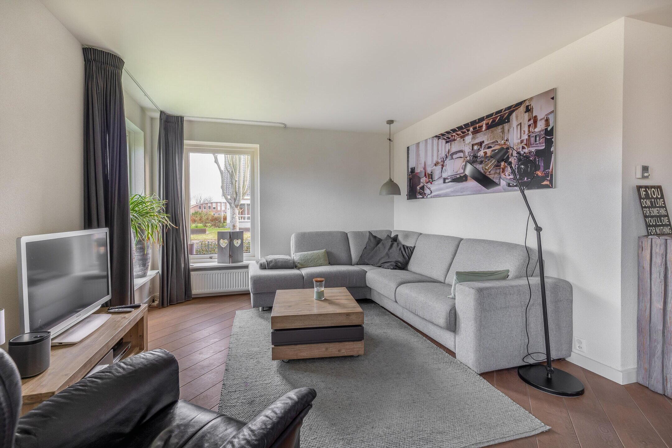Je komt via de zijkant van de woning binnen in de hal met trapopgang, een net toilet met fonteintje, de meterkast en toegang een praktische slaap-/werk-/hobbykamer en de woonkamer. Deze ruime woonkamer heeft een mooie houten vloer en door de vele ramen een fijne licht inval. Via de eethoek bereik je de dichte keuken. Het keukenblok in hoekopstelling heeft veel berg- en werkruimte en is voorzien van diverse inbouwapparatuur zoals een combimagnetron/oven, Quooker, afzuigkap, een inductiekookplaat (2023) en een vaatwasser (2022). Er zijn 2 ramen waarvan één boven de wasbak. Aansluitend is de grote bijkeuken met witgoedaansluiting, CV-opstelling, voldoende bergruimte en een deur naar buiten. Ook kun je van hieruit binnendoor naar de riante L-vormige garage. Ook hier is een deur naar buiten, een sectionele garagedeur en drie ramen voor natuurlijk daglicht. Op het platte dak van de garage liggen 8 zonnepanelen.